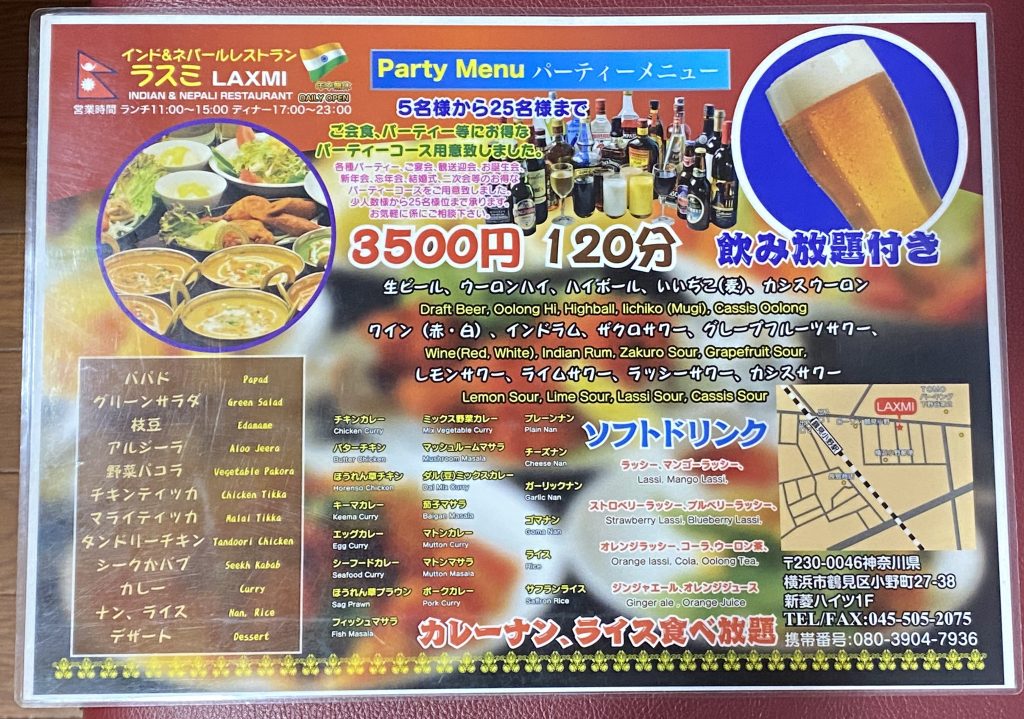 カレーやナン、ライスなど食べ放題と飲み放題付きで安いです